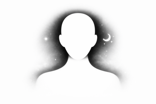顔は空白。でも背後に世界がある。