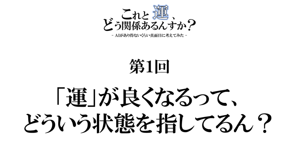 第1回「運」が良くなるって、どういう状態を指してるん?|『これと運、どう関係あるんすか?』